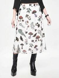 Fairycore Falda acampanada con estampado de setas y plantas en estilo oscuro para mujer