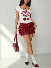 Camiseta ajustada y versátil con estampado de chica anime de lunares Y2K