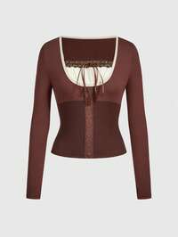 Camiseta con encaje en contraste con lazo delantero