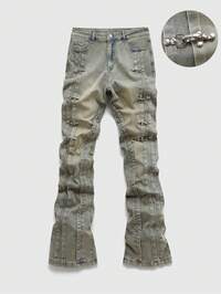Pantalones vaqueros de algodón con rasgados, cintura con cordón, deshilachados, lisos, ajuste delgado, largos, rasgados, lisos, negros, tipo cargo para hombre, regalos para esposo o novio, para salir, reunirse, ir al trabajo, parque nacional, calle, estilo grunge