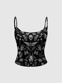 Grunge Punk Top sin mangas sexy con tirantes finos y escote bajo en color negro, con tachuelas, rhinestones y cintas, adecuado para verano, playa, graduación, Pascua, conciertos, vacaciones en Nashville, festivales de música, rock Grunge Punk Top sin mangas sexy con tirantes finos y escote bajo en color negro, con tachuelas, rhinestones y cintas, adecuado para verano, playa, graduación, Pascua, conciertos, vacaciones en Nashville, festivales de música, rock