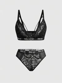 Kawaii Conjunto de lencería sexy de malla bordada para mujer