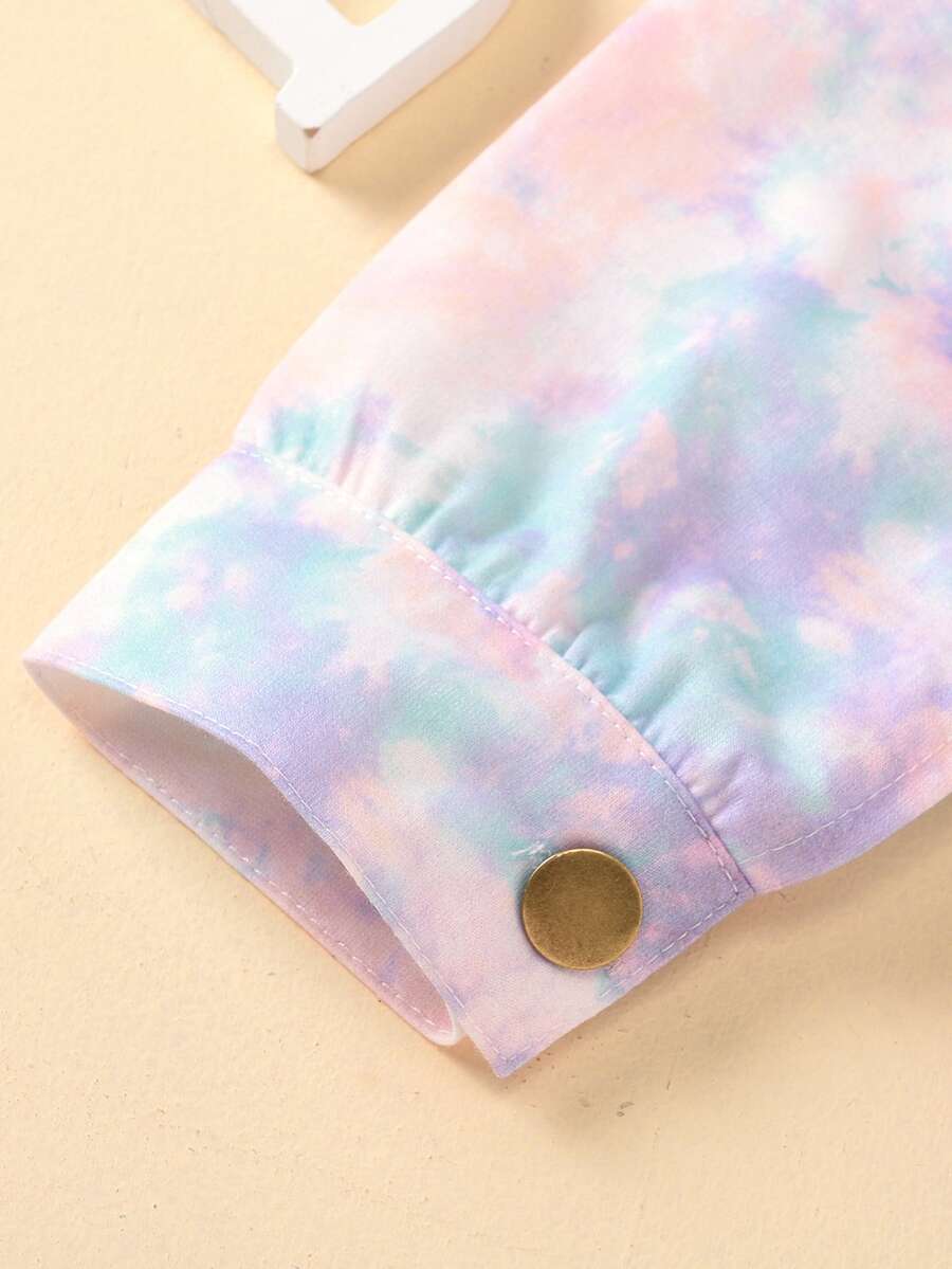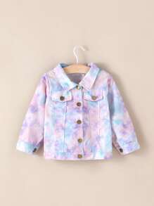 Chaqueta vaquera con detalle de solapa con efecto tie dye para niñas pequeñas
