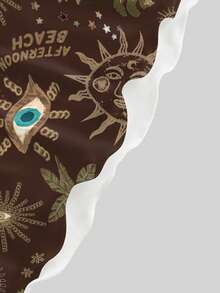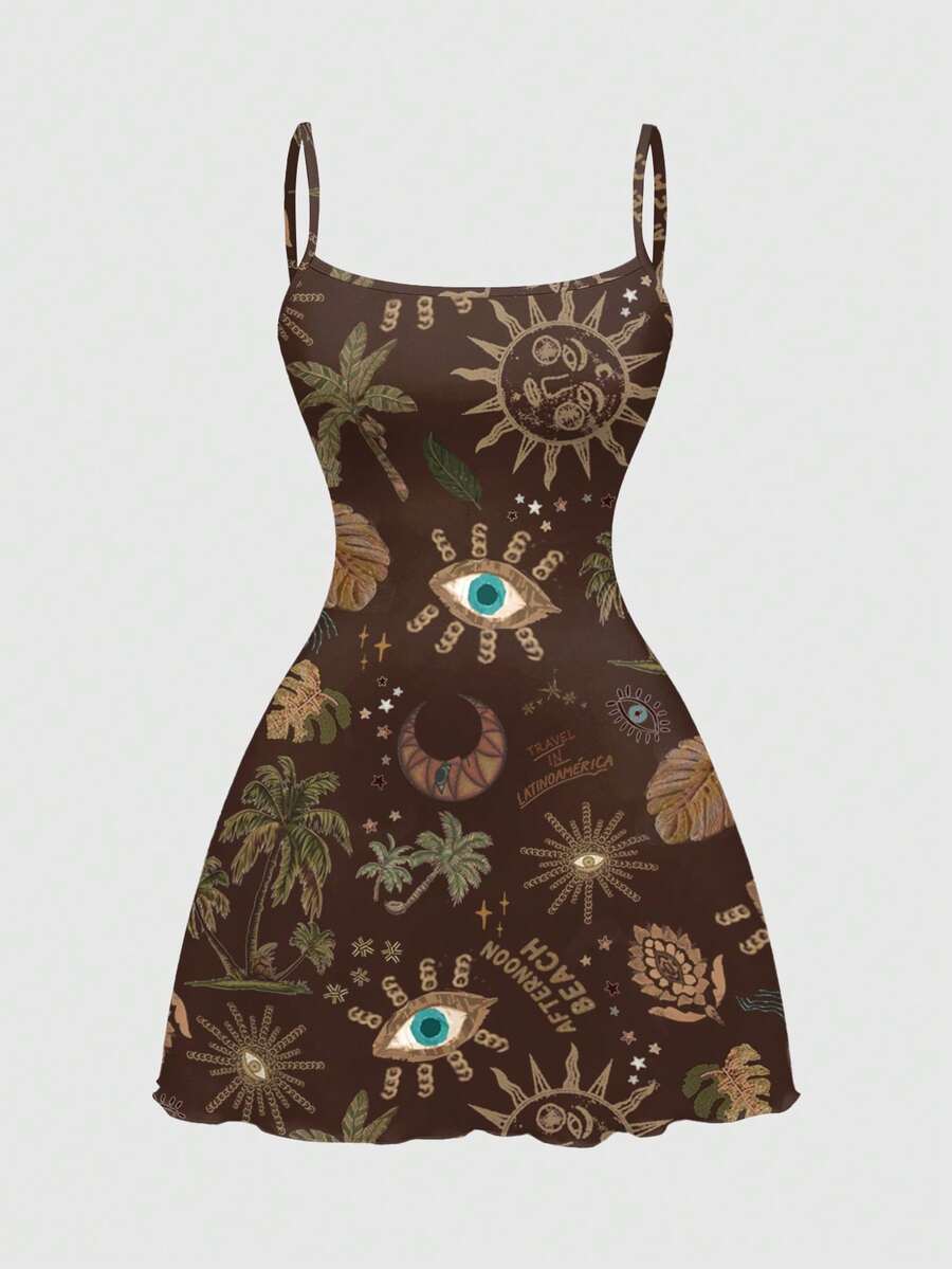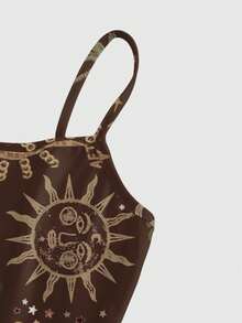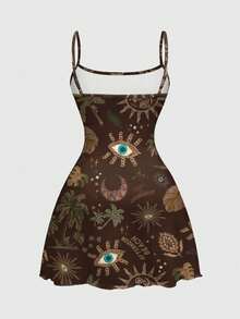 Fairycore Vestido mini con estampado total de plantas, flores, mariposas, sol, luna y estrellas en estilo gótico para mujeres