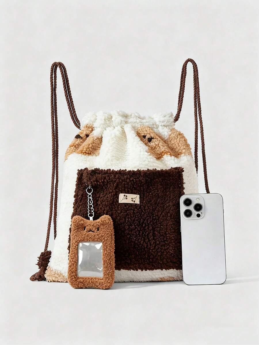 Kawaii Mochila con cordón de gran capacidad con estampado de estrellas para mujeres, ideal para el uso diario, perfecta para combinar con accesorios de mochilas, esencial para volver a la escuela, mochila de estilo universitario para la escuela