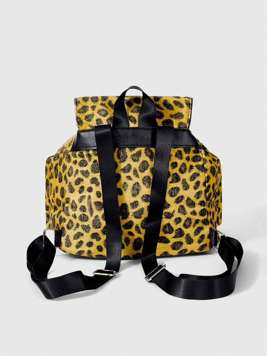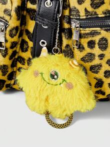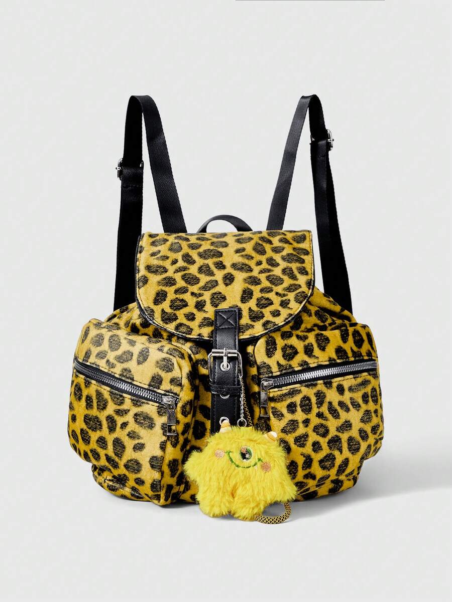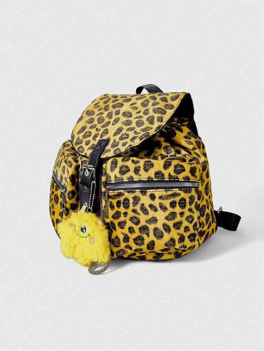 Goth 1 pieza Mochila vintage con estampado de leopardo estilo Y2K con decoración de muñeca Cyclops, mochila casual de gran capacidad con múltiples bolsillos, adecuada para uso diario, escuela, viajes y compras para mujeres