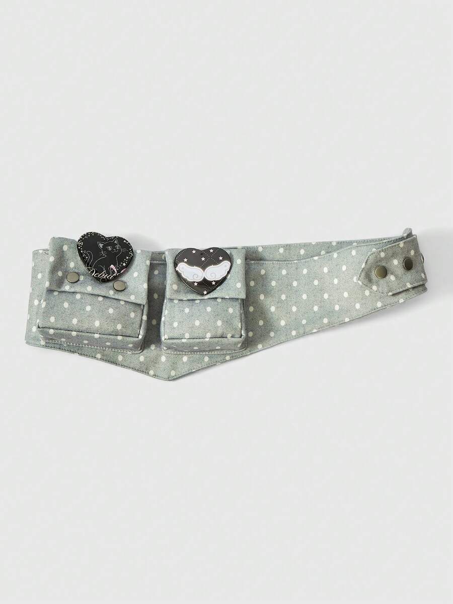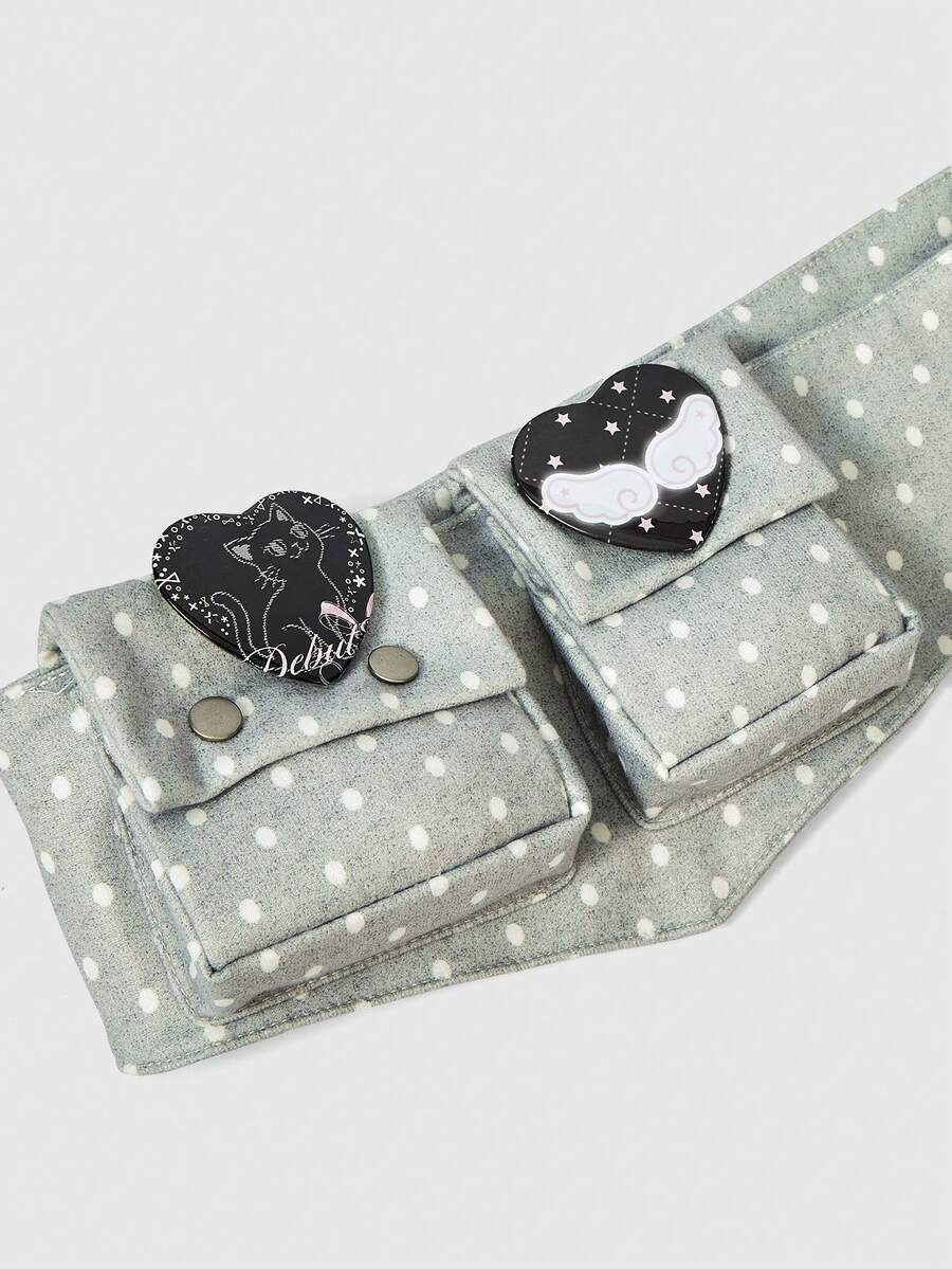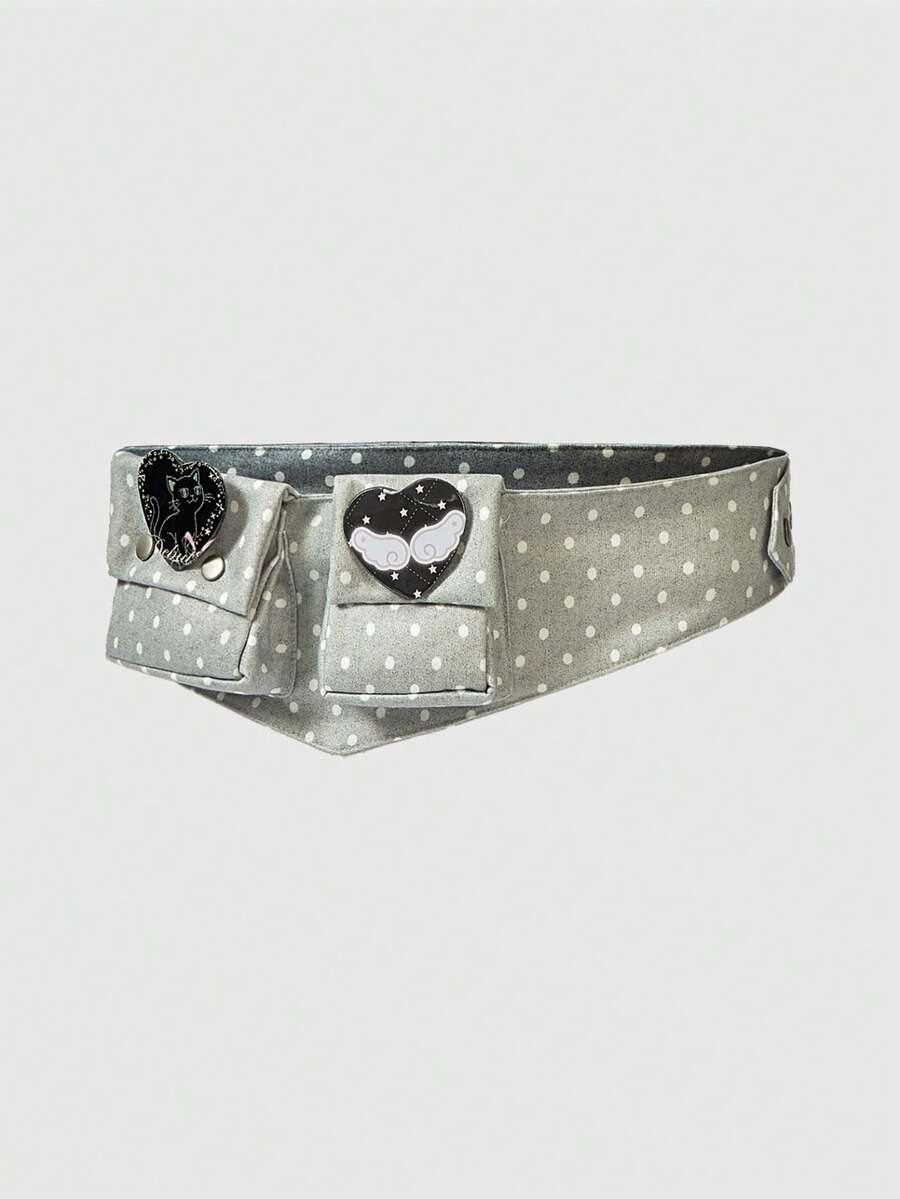 Anime Bolso de cintura con estampado de lunares blanco y negro retro, con bolsillo y correa ajustable. Accesorio versátil y de moda para el transporte diario