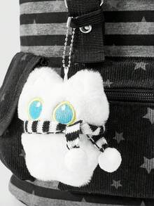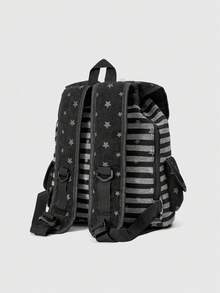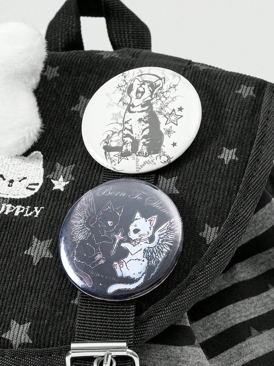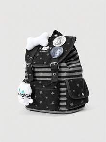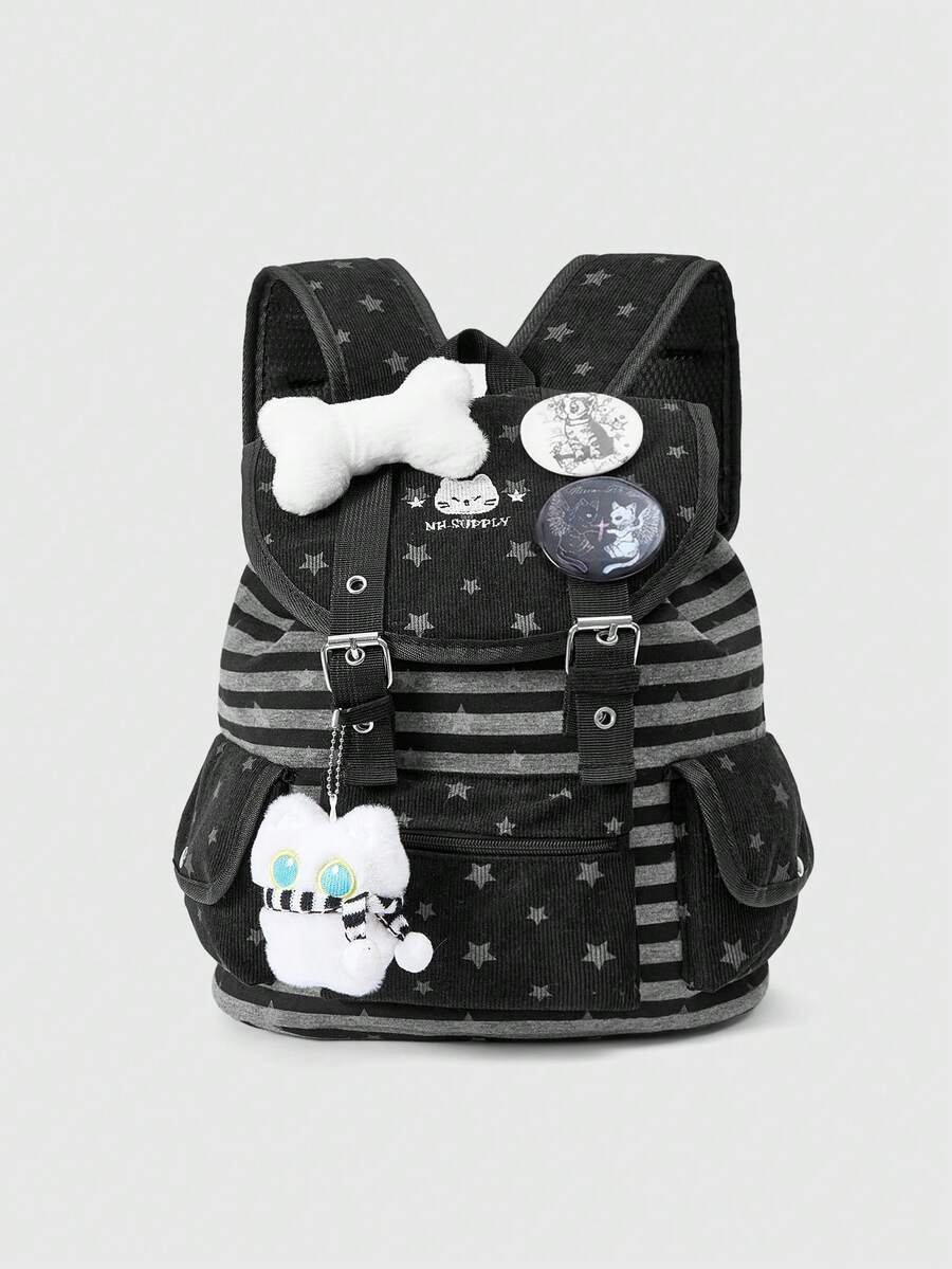 Grunge Punk Mochila negra de estilo punk con estampado de pata de gato, hueso y estrella en contraste de color, con múltiples bolsillos, mochila casual de gran capacidad y unisex adecuada para ir al trabajo o a la escuela