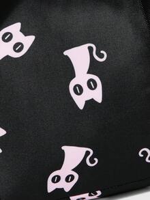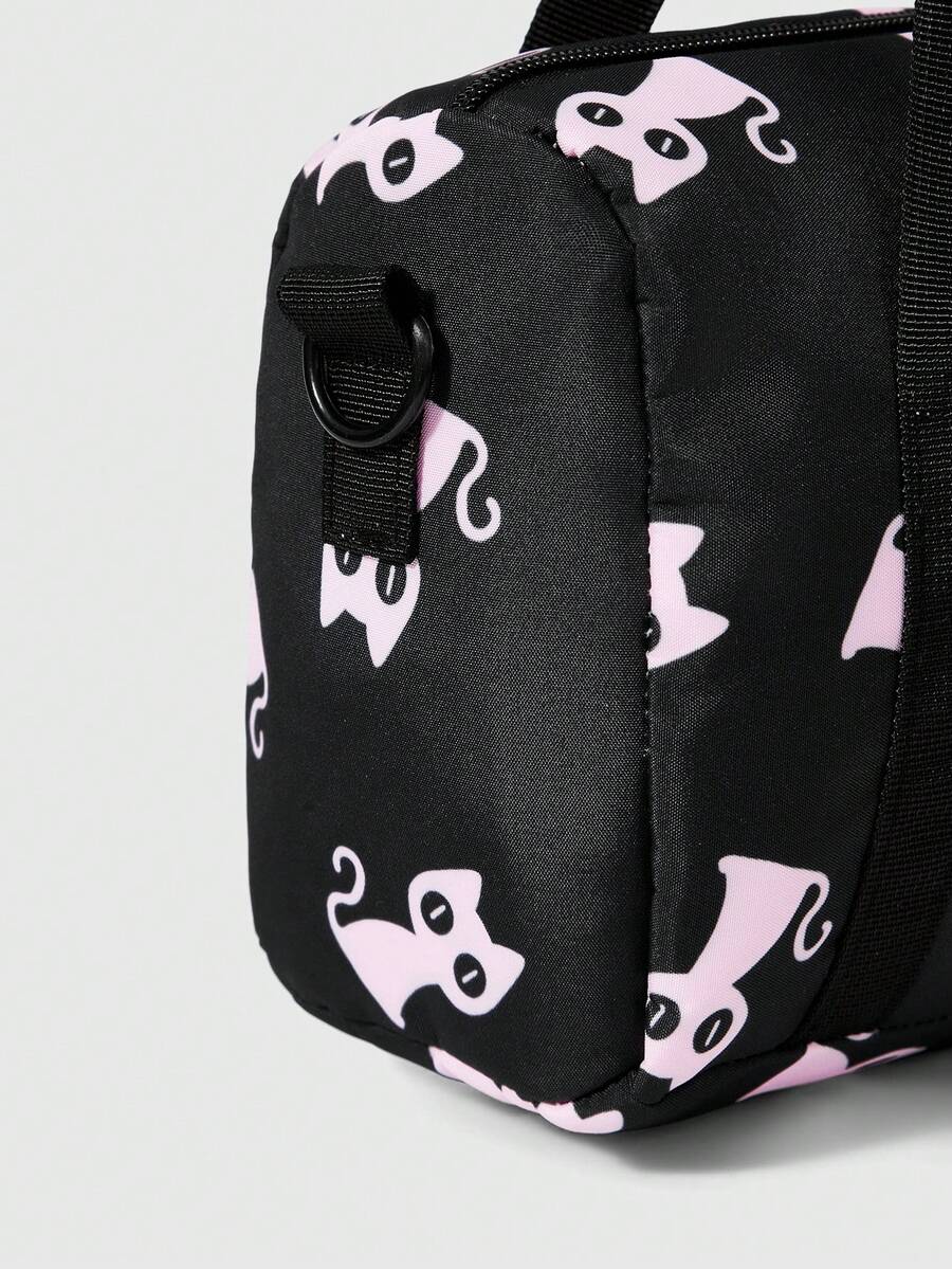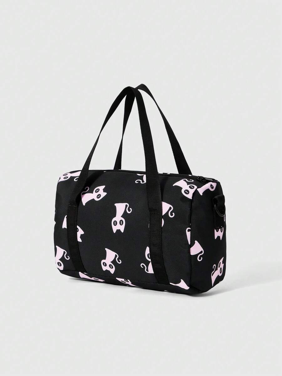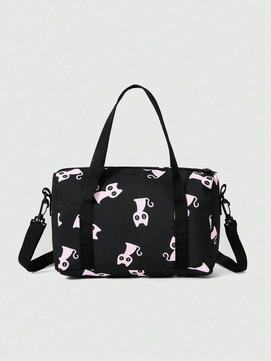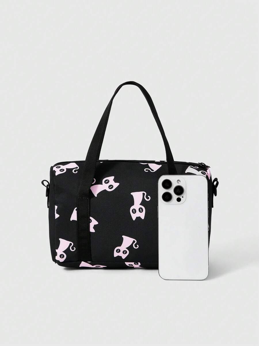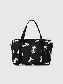 Kawaii 1 pieza Bolso de hombro con estampado de dibujos animados casual, adecuado para estudiantes universitarios, compras, fiestas, ejercicio
