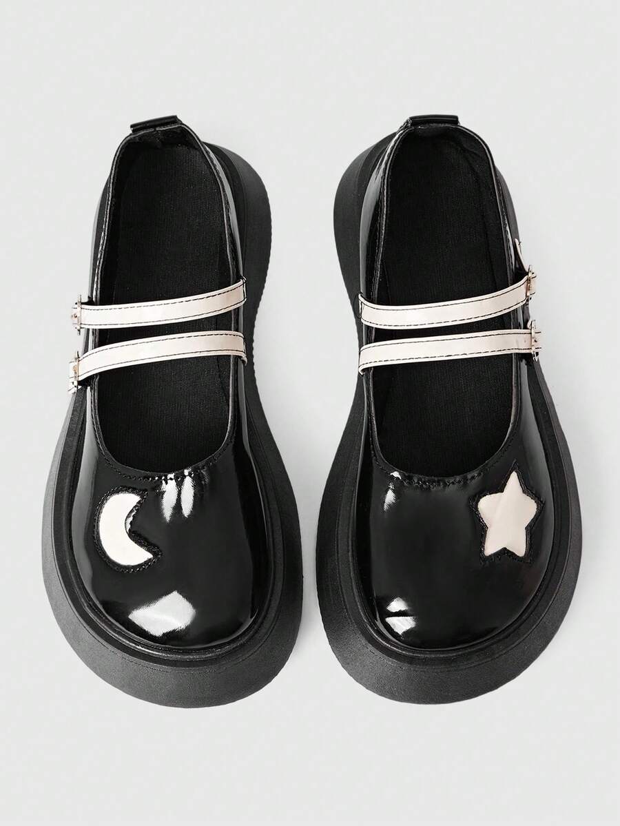 Kawaii Zapatos planos tipo mocasín con correa tipo Mary Jane en color blanco, adecuados para faldas, estudiantes adolescentes y mujeres, con plataforma y cuña