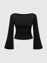 Goth Camiseta básica de corte ajustado, de unicolor, con cuello en V y mangas campana, talla grande y sexy